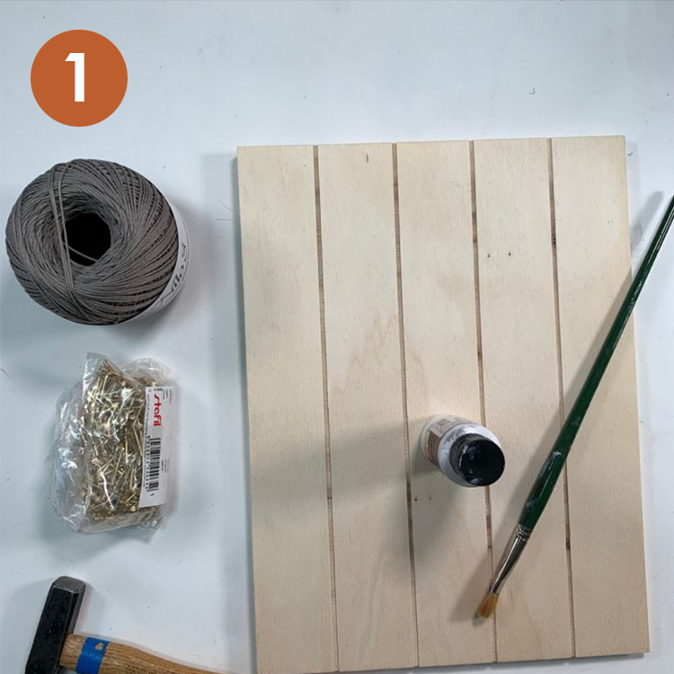 3: Enfoncez, avec un marteu, de petites pointes tout autour du modèle, là où vous avez fait les points. Passez le fil entre les pointes, vous pouvez aussi faire passer le fil d'un côté vers l'autre en zig zag.