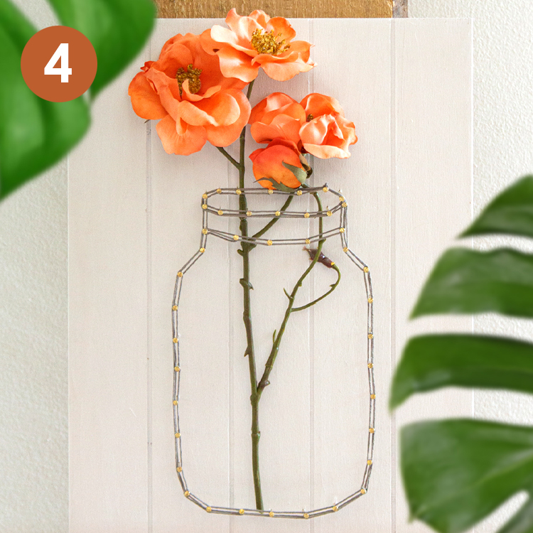 4: Collez des fleurs en soie ou des fleurs sèches sur le bois, dans le vase et derrière le fil.