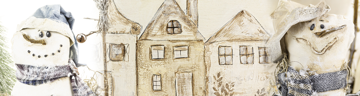 Vous souhaitez créer une petite scène d’hiver complète ? Utilisez un plateau en bois comme fond pour un petit village enneigé.