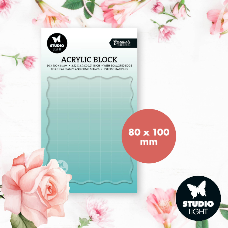 Acrylic stamping block for clear and cling stamps with grid Essentials nr. 09
