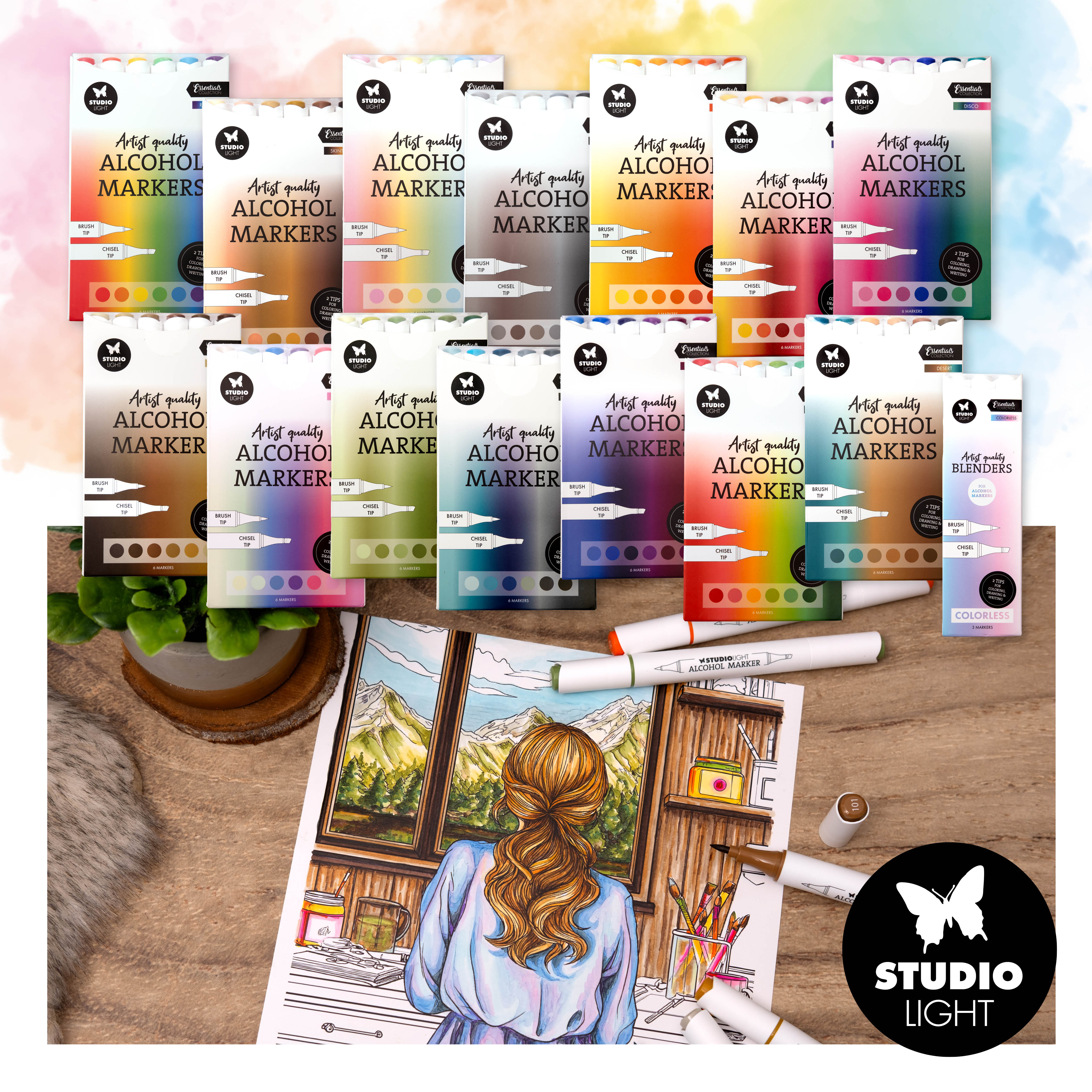 Les marqueurs Essentials sont disponibles dans une large palette de couleurs qui se mélangent harmonieusement pour créer des effets d’ombre et de lumière subtils.