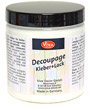 Colle papier transparente et brillante au sèchage et vernis de protection; adaptés pour la technique de découpage et décopatch, les collages, techniques Mixed média, etc. Adaptée sur support absorbants et non absorbants tels que bois, papier maché, MDF, toile, terre cuite et verre.