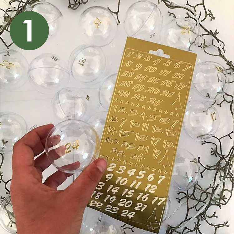 Avec ce calendrier de l'Avent, vous pouvez cacher de minis cadeaux dans des boules transparentes.