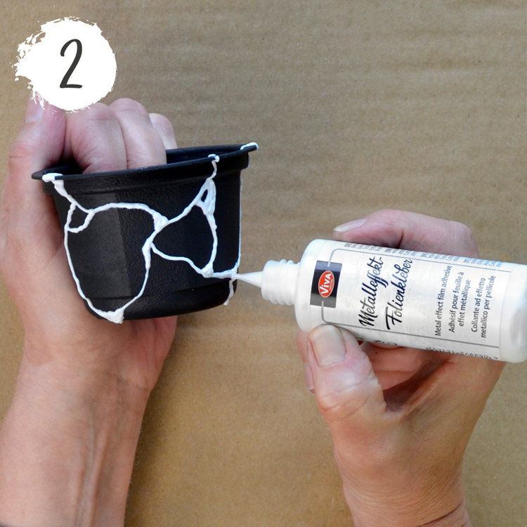 Appliquez la colle Metalleffekt-Folienkleber directement à partir du flacon.