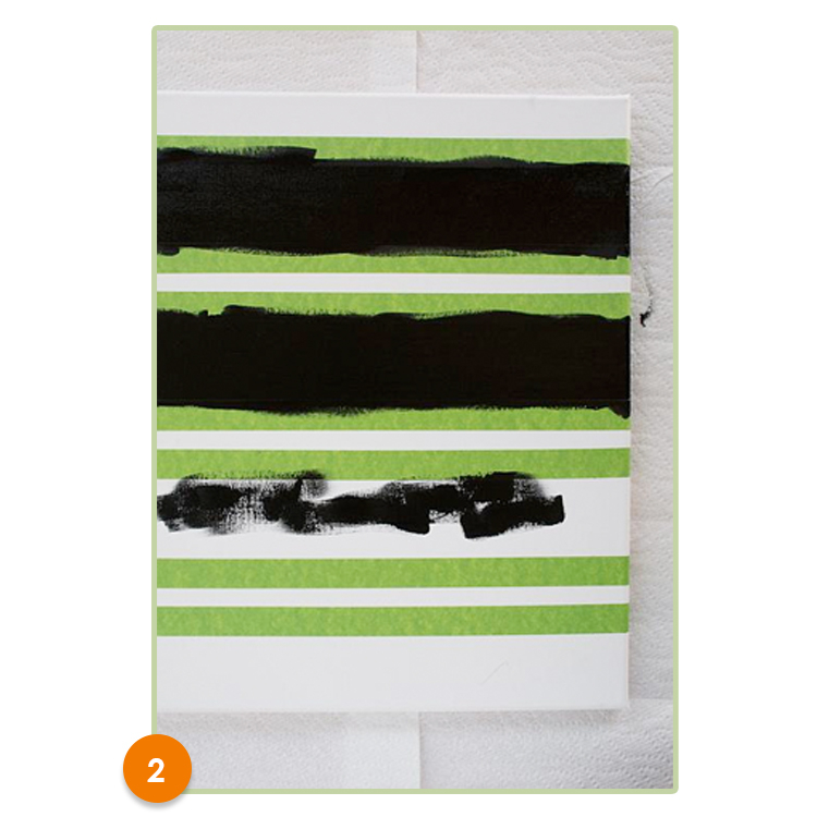 2. Peindre les bandes alternativement avec 2 couleurs de peintures acryliques.