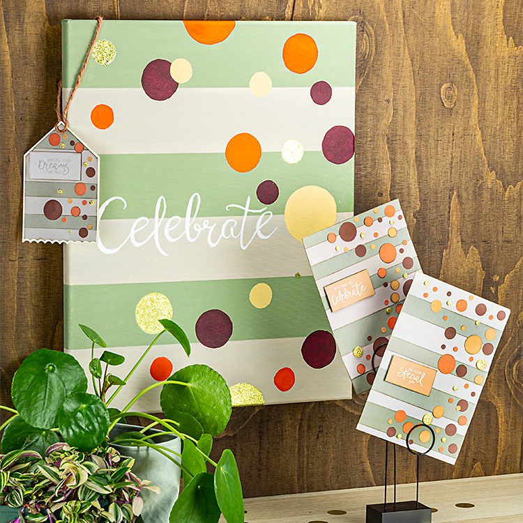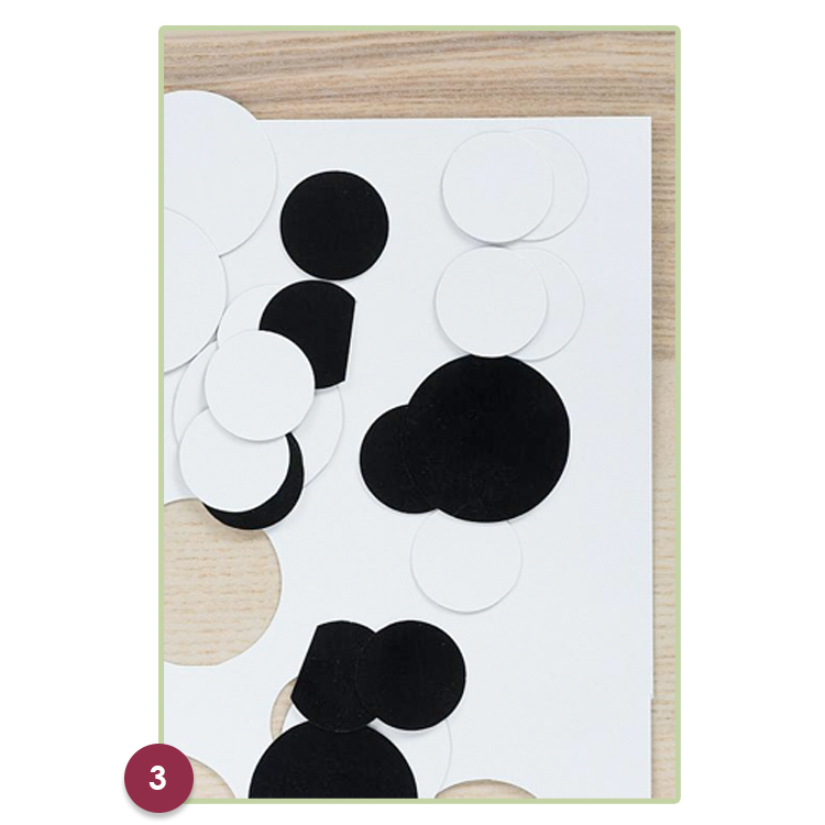 4. Utiliser ensuite le carton comme pochoir pour pouvoir ajouter des pois ici ou là sur le tableau.