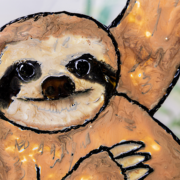 Pour terminer, ajouter avec de la peinture blanche un reflet dans les yeux noirs. Les paresseux existent dans toutes sortes de couleurs, choisissez le mélange qui vous parle le plus. Il y a de nombeux exemples sur internet.