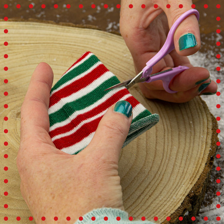 Découper ensuite une bande d'environ 2cm dans le manchon en coton, cela sera le pull