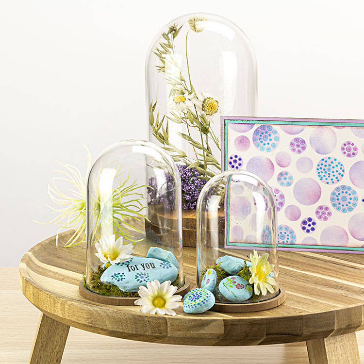 A utiliser, par exemple, sur des cailloux sous un dome ou comme presse papier...
