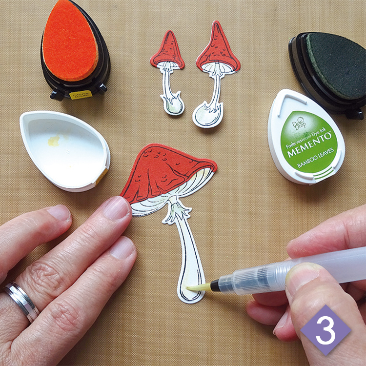 4. Aspergez un peu de couleur avec la peinture là où les champignons viendront plus tard. Laissez bien sécher.