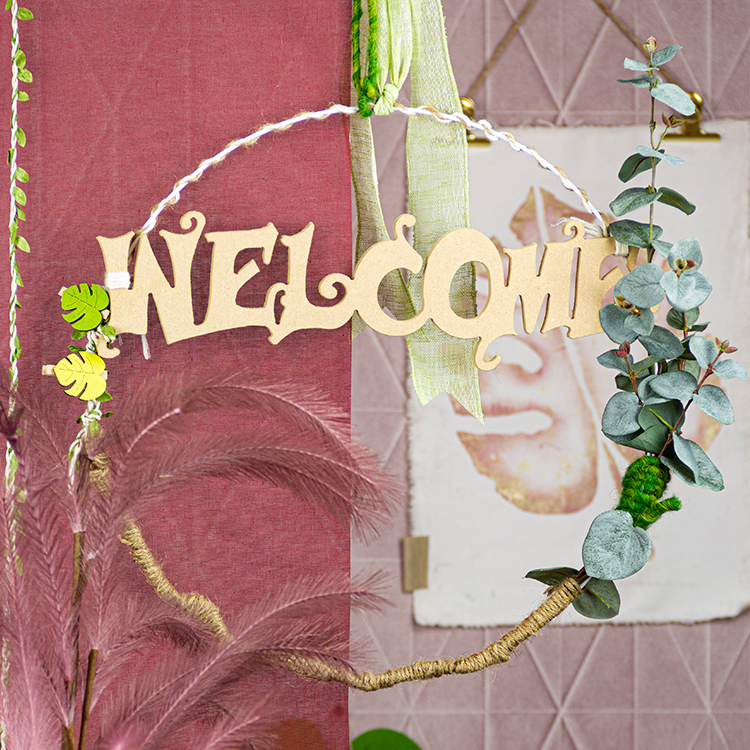 Utiliser un joli ruban pour pouvoir accrocher le tout à, par exemple, la porte d'entrée.