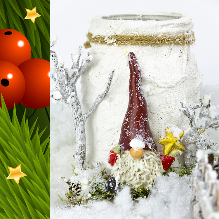 Pour complèter votre décor, vous pouvez ajouter des brindilles naturelles peintes en blanc, de la mousse et de neige avec l' Eis-Effekt de Viva Decor.
