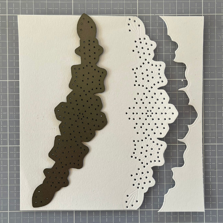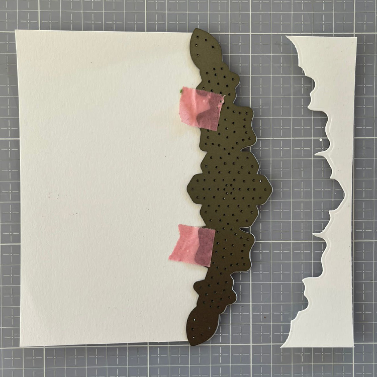 • Accrocher le gabarit de découpe bordure sur un des côtés avec du crafttape et découper.