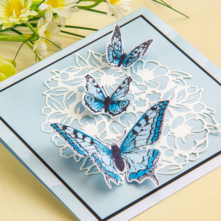 Utiliser un peu de mousse adhésive sous le corps des papillons pour les coller.