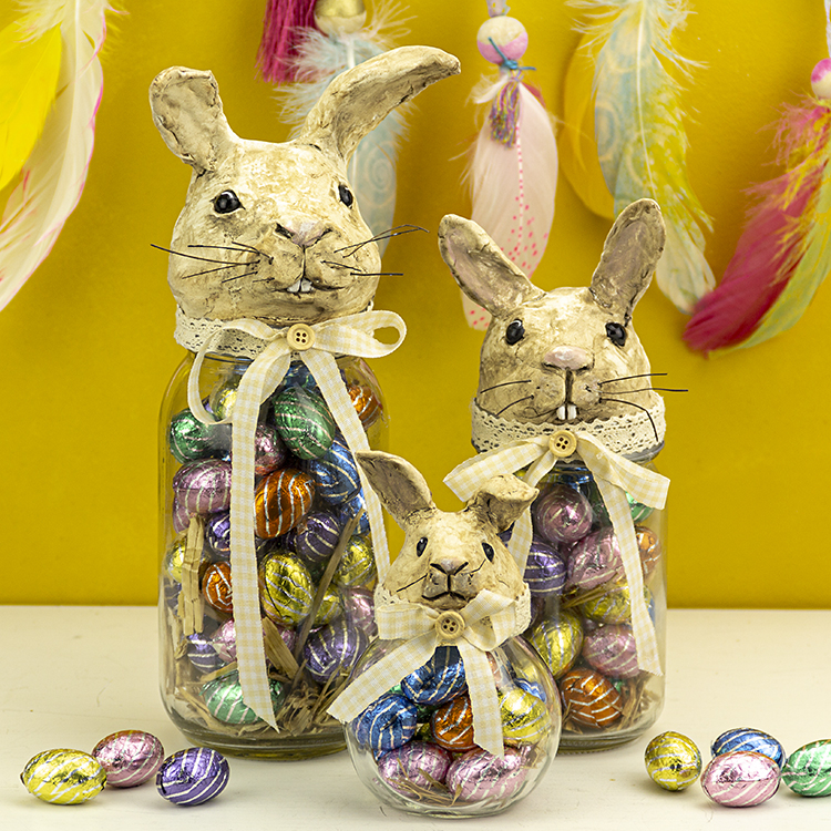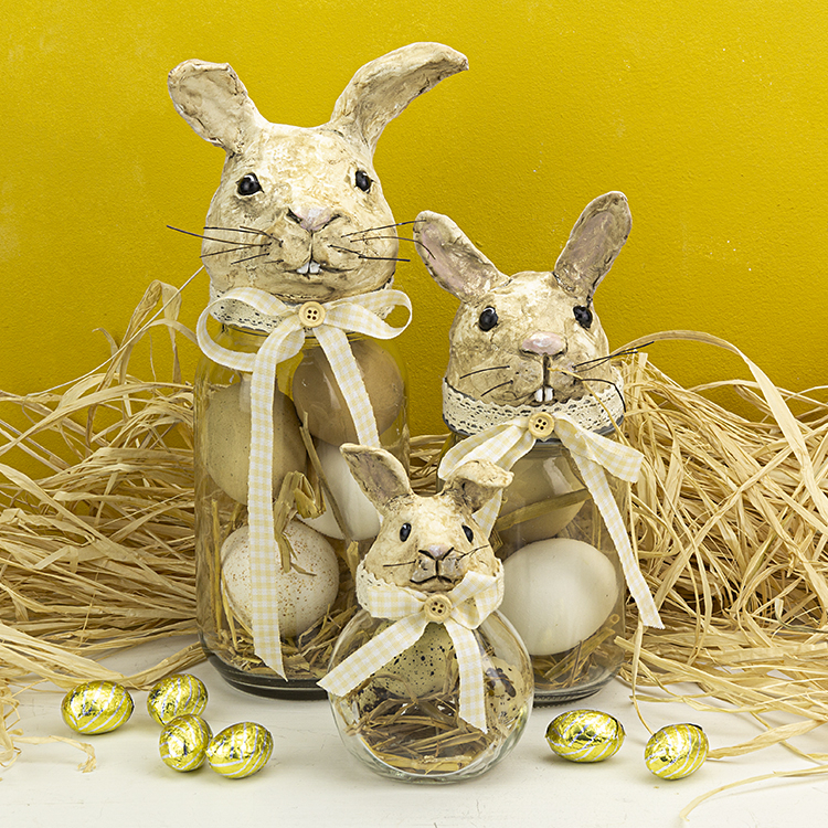 Dans cette vidéo, Elly vous explique, étape par étape, comment réaliser ces pots avec têtes de lièvres. Remplissez ensuite les pots d'oeufs en plastique classiques ou d'oeufs de Pâques colorés pour offrir!