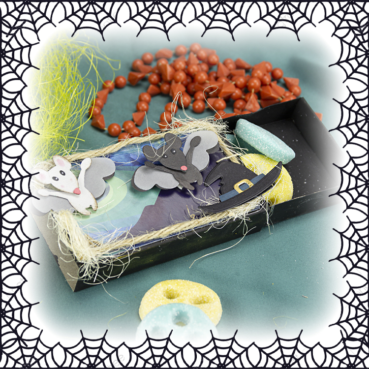 Pour terminer, coller des chauve-souris et un chapeau de sorcier.