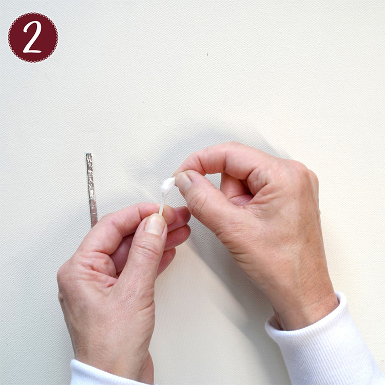 1 - Plier une bande fine de papier aluminium et coller sur la toile avec un pistolet à colle