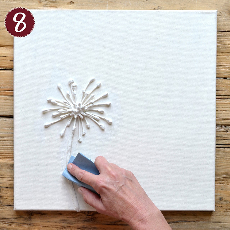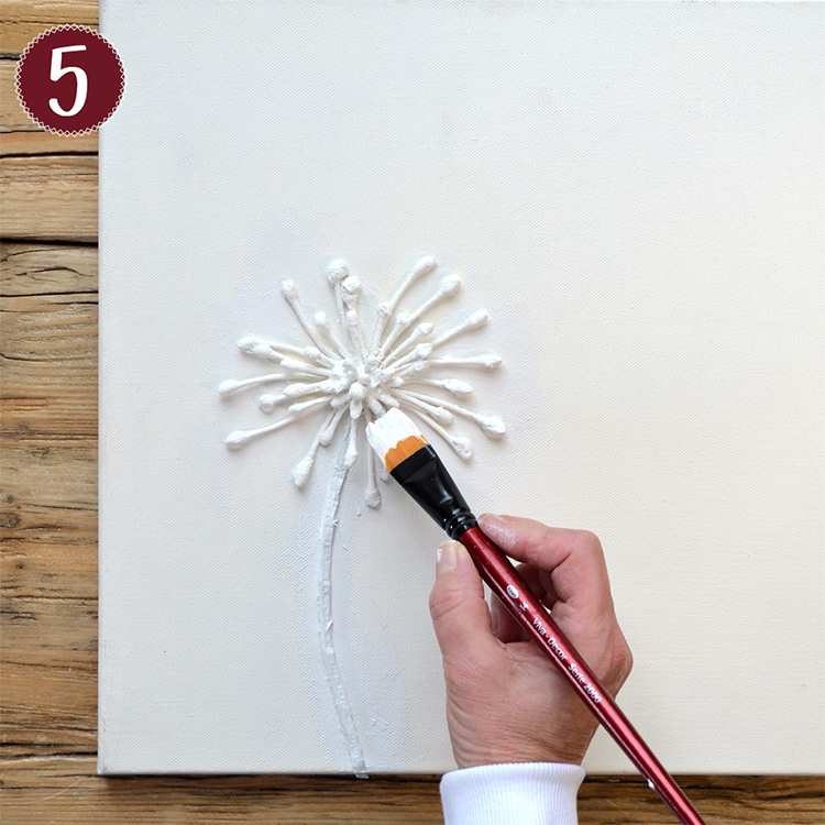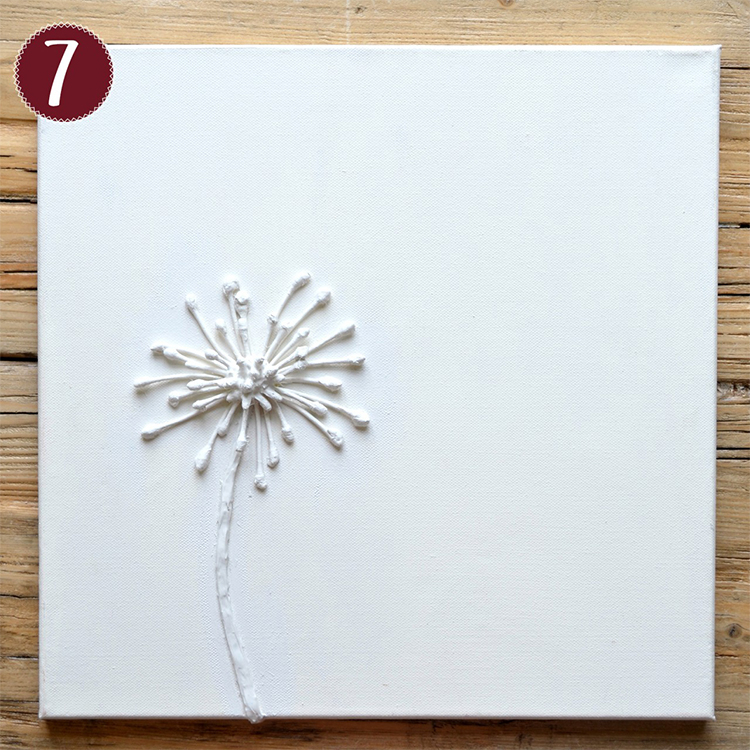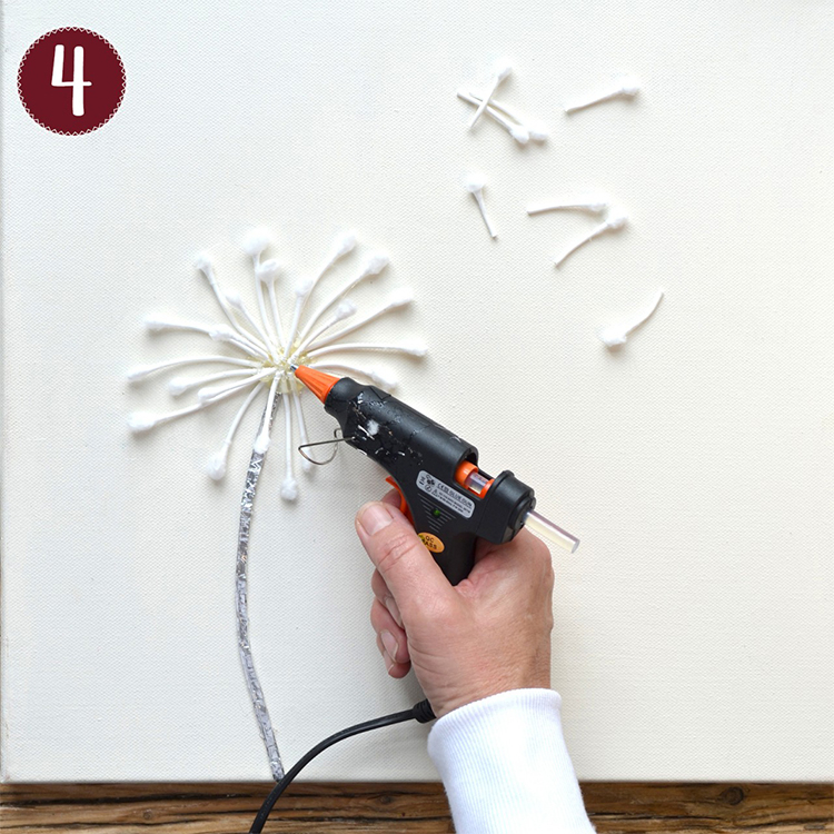 4 - Coller le bouts découpés des coton-tige sur la toile avec un pistolet à colle