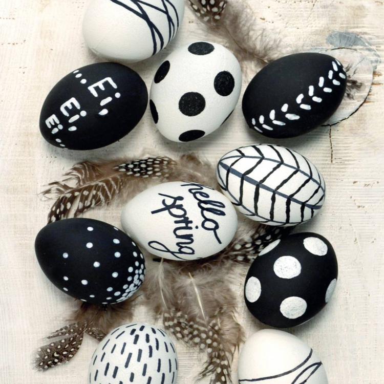Décorer ensuite les oeufs avec du raffia, de la ficelle et des plumes puis les placer dans une coupe remplie de raffia.