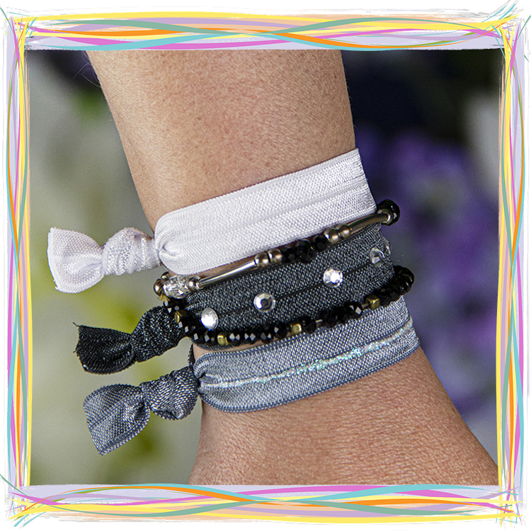 Ces bracelets en tissu peuvent être tamponnés, vous pouvez y mettre des perles autocollantes, des motifs en Glitterpen, etc...