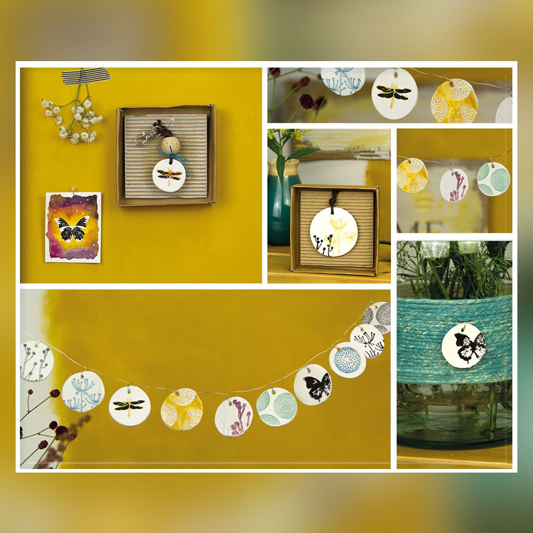 Technique 1. (avec relief): Tamponner la pâte avant qu'elle ne sèche avec l'encre Versamagic ou Memento