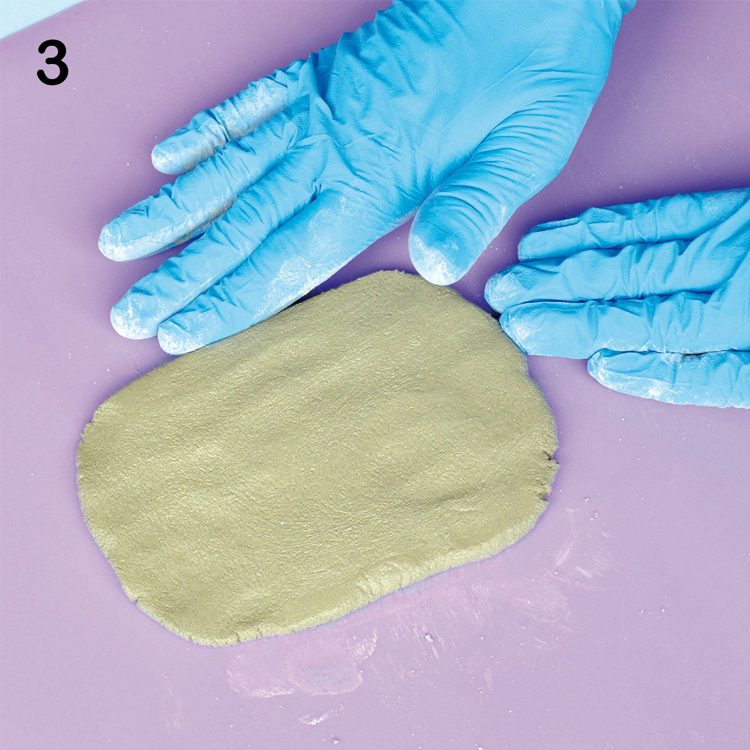 3: Mélanger le béton à pétrir (voir „Base“) et rouler à plat sur une épaisseur d‘environ 7 mm.
