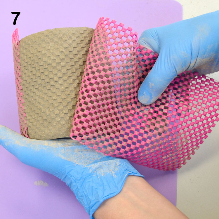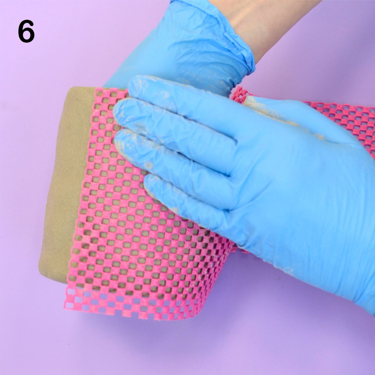 2: Couper un tapis texturé en plastique (par ex. un tapis antidérapant, pochoir, tampon) correspondant à la taille d’une boîte de conserve. (Ou utilisez un pochoir/tampon.)